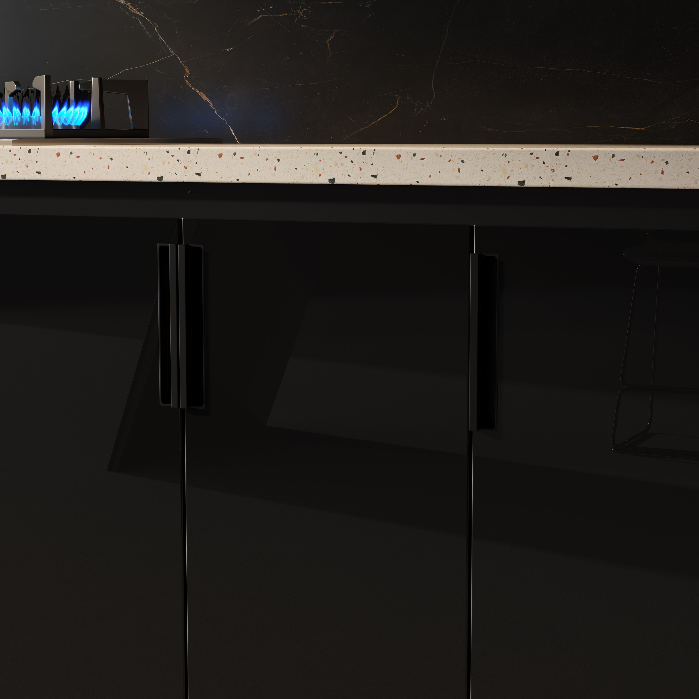 Deep black in a glossy finish, bringing refined and luxurious style to interiors
