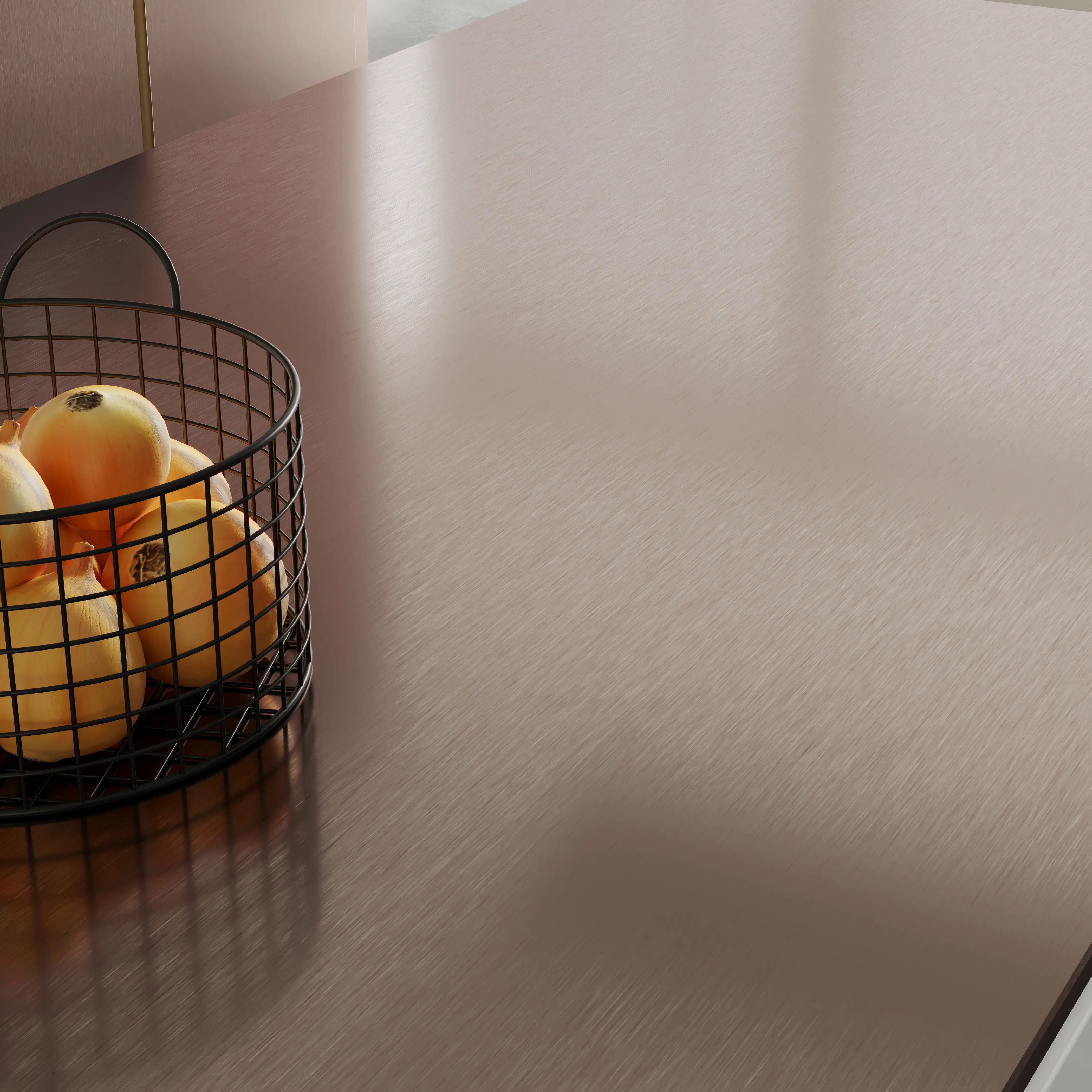 Brushed copper with warm, noble shimmer and refined character